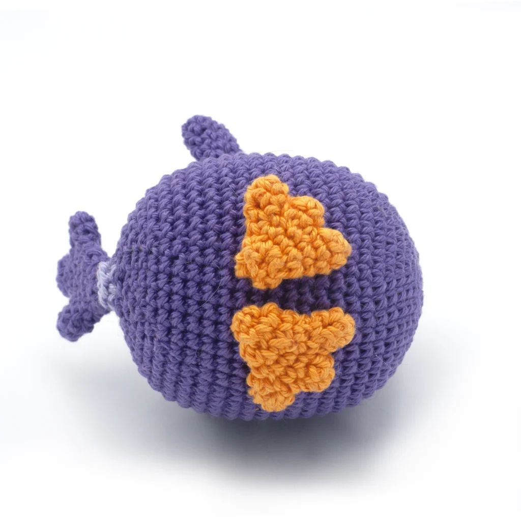 - Sew the wings on the body between rounds 16 and 19 with in interspace of 13 st between both wings.