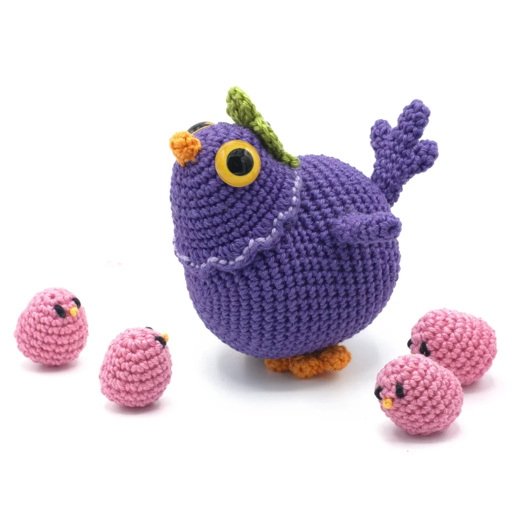 Size of Cheeken (when made with sport weight cotton yarn): 4 inch / 10 cm