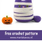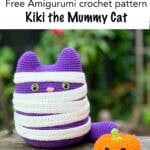 Dit is Kiki de Mummie Kat, een super schattig gratis amigurumi haakpatroon, perfect voor Halloween. Halloween is zelfs Kiki de Kat's favoriete dag van het jaar, en deze keer verkleedde ze zich als een griezelige mummie. Samen met haar enge pompoenvriendje vormt ze een onweerstaanbaar schattig, maar ook griezelig paar.
